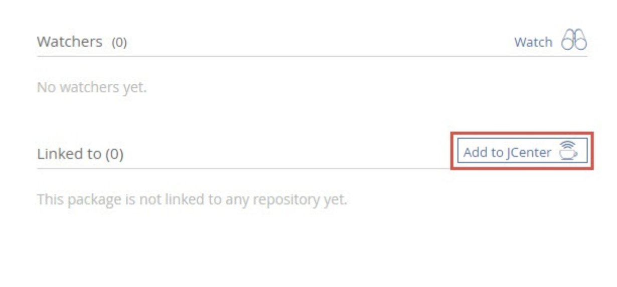 - Package 상세페이지 우측 하단에 'Add to JCenter'를 눌러줍니다.