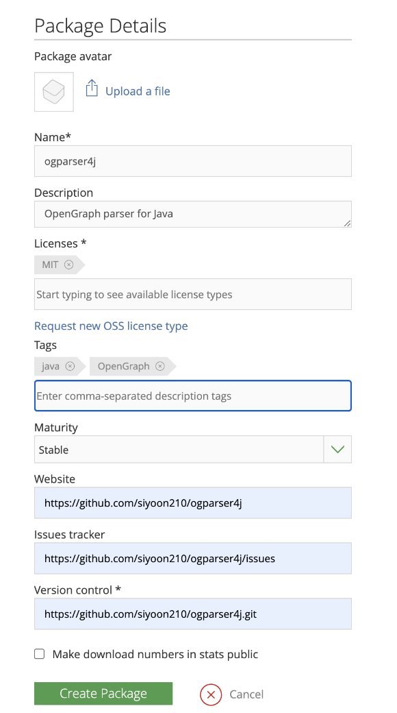 - maven 저장소에 업로드하기 위해서는 Sonatype Jira에 먼저 승인을 받아야 가능합니다.