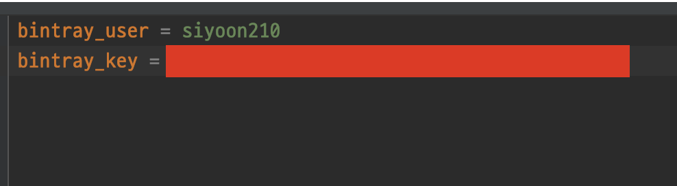 - user는 bintray id를, key는 bintray의 API key를 입력합니다.